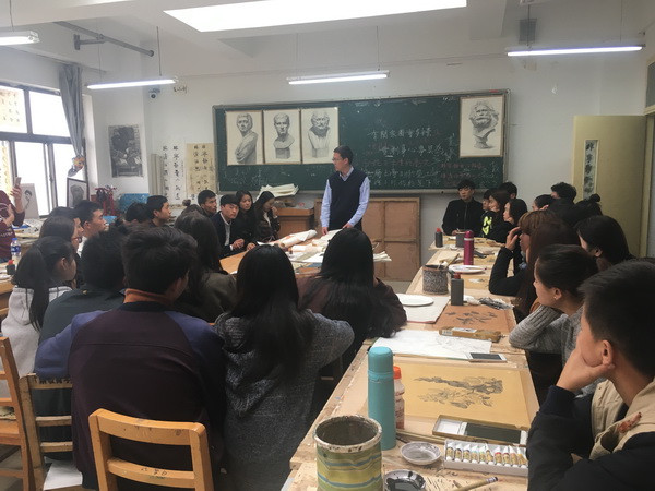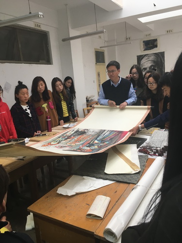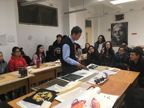 传承人、zoty中欧官方网站特聘教授张文军为美术公司同学做了题为《中国书画装裱与保护》的专题讲座。