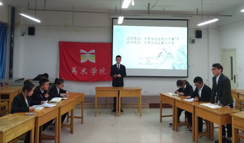 本场比赛围绕“老员工创业利大于弊还是弊大于利”为题展开辩论。首先,双方一辩分别开篇立论,逻辑清晰,言简意赅用时三分钟。之后是攻辩环节,双方二辩彼此反驳美术二班辩论队反应机敏、语言犀利,紧扣老员工拥有创新精神、独特的眼光与独特的思维模式等优势展开辩论;美术一班辩论队则张弛有度、侃侃而谈,分别从进入市场的要求以及长期经营的需要两个方面论述立足于市场需求的重要性,场上辩手你来我往,唇枪舌战。不失风度,始终面带微笑,侃侃而谈。良好的风范、出色的口才、敏捷的思维令场下观众为之折服,掌声不断。最终,正方美术二班凭借着出色的反应能力和严谨的逻辑夺得本场辩论赛的胜利,反方三辩荣获“优秀辩手”称号。
