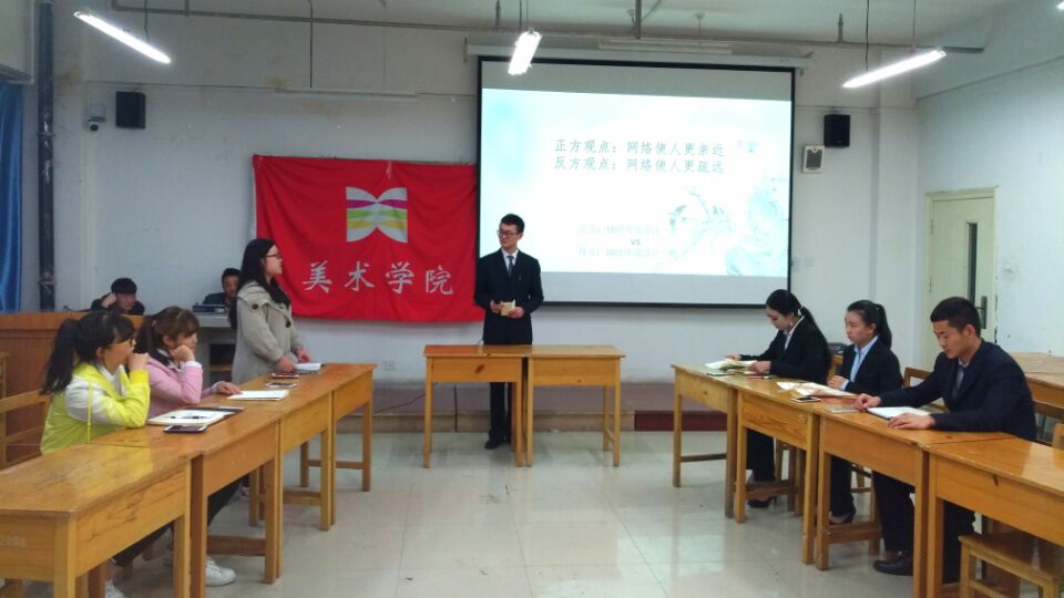 首先由各方称述自己方的观点,双方一辩用具有高度概括性的陈述为本场辩论开篇立论。然后双方二辩彼此反驳,双方二辩灵活的思维和缜密的逻辑推理,不时的赢得场下阵阵掌声。在自由辩论阶段,双方把网络的优势和略势阐述的非常到位。最终,反方环境设计二班凭借着出色的反应能力和严谨的逻辑夺得本场辩论赛的胜利,正方二辩荣获“优秀辩手”称号。