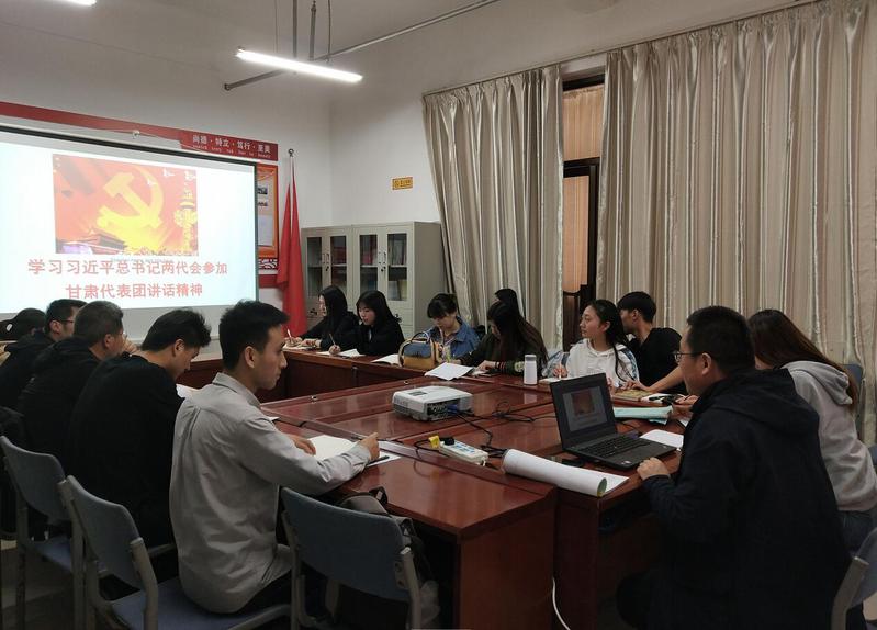 祁敏轩同志带领大家学习习近平总书记参加甘肃代表团审议时的重要讲话精神,并要求全体党员要深刻领会习近平总书记参加甘肃代表团审议时的重要讲话精神,带头学习习近平新时代中国特色社会主义思想。在日常学习生活中,应不断牢固树立“四个意识”,坚定“四个自信”,加强理论学习,刻苦努力,提升政治敏感性,积极主动,遵守纪律,文明礼貌,共同创建文明和谐校园。