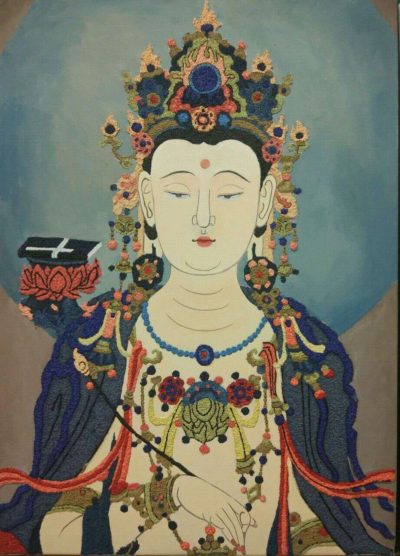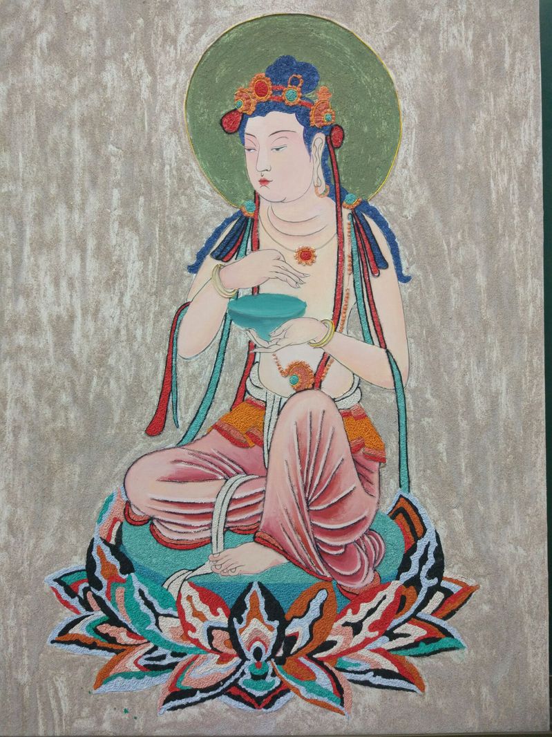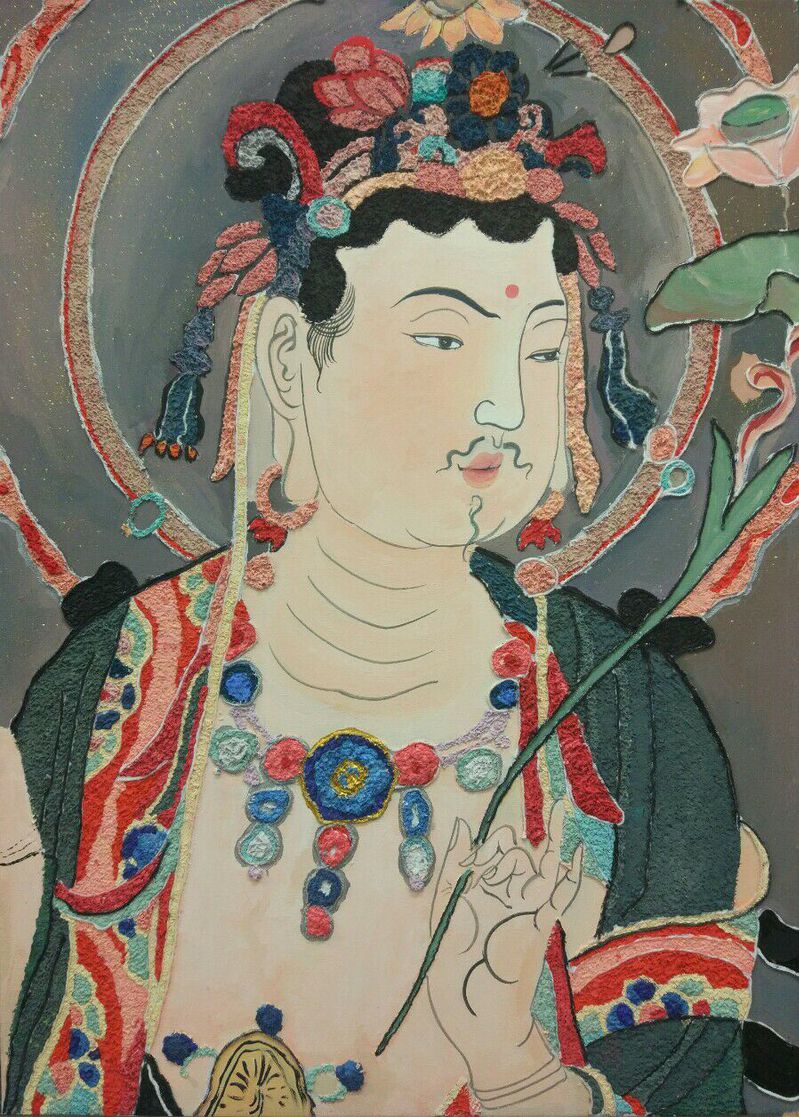 在该课程的教学过程中,王亦慧老师带领同学们从敦煌壁画、甘肃彩陶等我省经典文化入手,认真组织研习。师生们依托研习成果,大胆运用新型材料进行创作,将教学任务融入创作活动,全面调动同学们的创作热情,整个教与学的过程积极向上且富有激情,产生了一批优秀的作品。从大地湾彩陶到敦煌壁画再到现代装饰画,同学们从经典传统文化中汲取了丰富的艺术营养,沉浸于艺术的传承又勇于突破和创新,实现了将中国传统文化融入课程建设的有效探索。