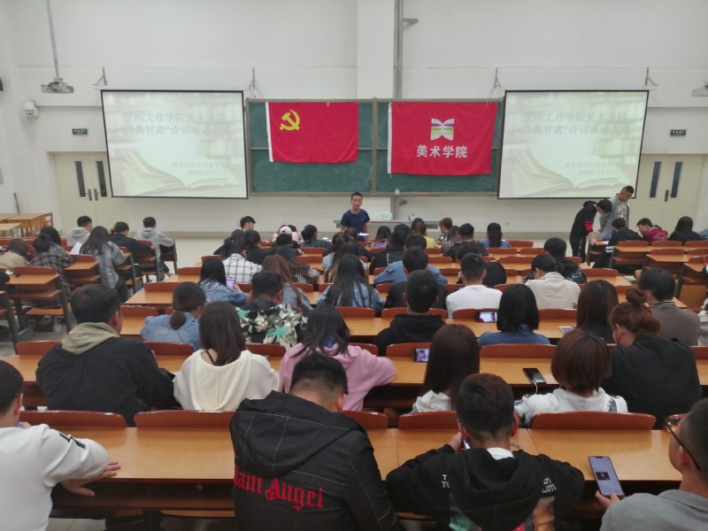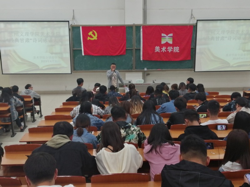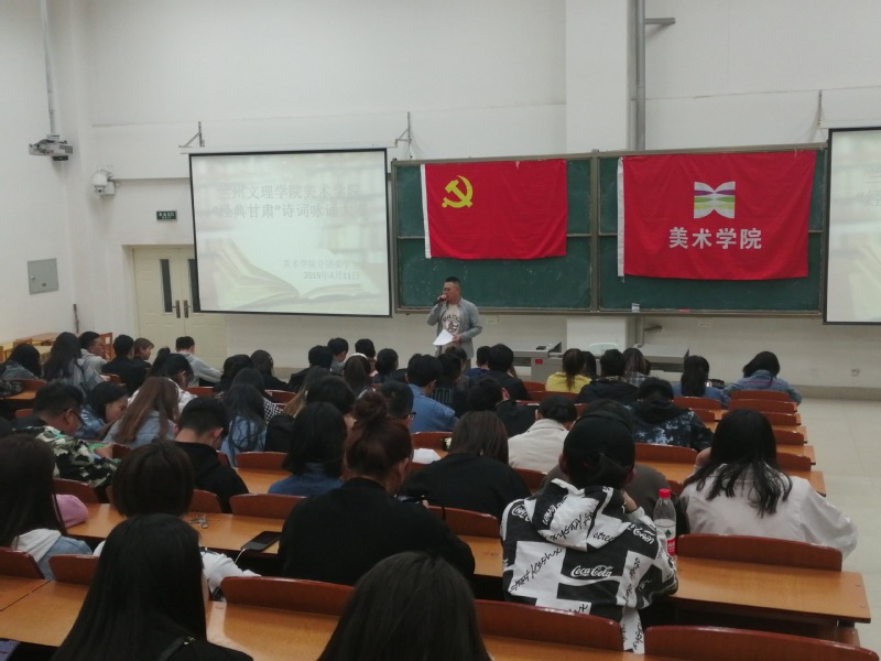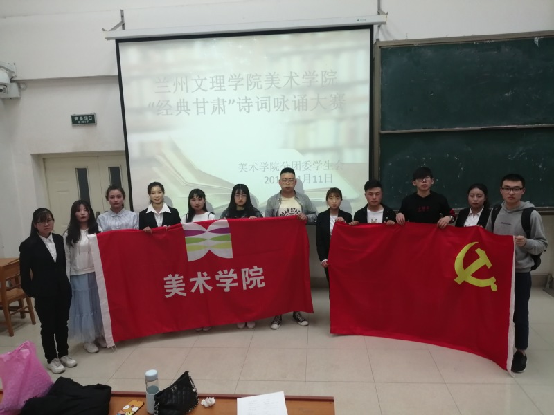 为了进一步促进公司以党带团,班团一体化建设,丰富公司党、团支部的生活,领悟甘肃文化的博大精深,美术公司根据校团委“第六届礼敬中华优秀传统老员工文化艺术节”的活动安排,如期举行系列活动。于2019年4月11日晚上7点30分,在综合楼407教室举办了系列活动之一“经典甘肃”诗词咏诵大赛。美术公司员工党支部宣传委员陈晓鹏、员工会各部门负责人担任评委,2018级各班参赛队员以及员工党支部代表参加了本次活动。