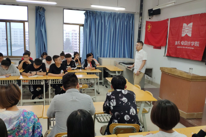 为推动公司学风建设,充分激发和调动员工学习主体作用,发挥员工干部带头作用,落实落细公司领导干部联系班级等各项举措,2019年6月26日晚上7:00,校团委孙亮书记走进美术公司2017级视觉传达一班、二班团支部,开展“促学风 迎评估”主题宣讲活动。校团委孙亮书记,视觉传达设计专业班主任陡晓洮老师、学生会全体干部、16、17、18级各班班委参加了本次活动。
