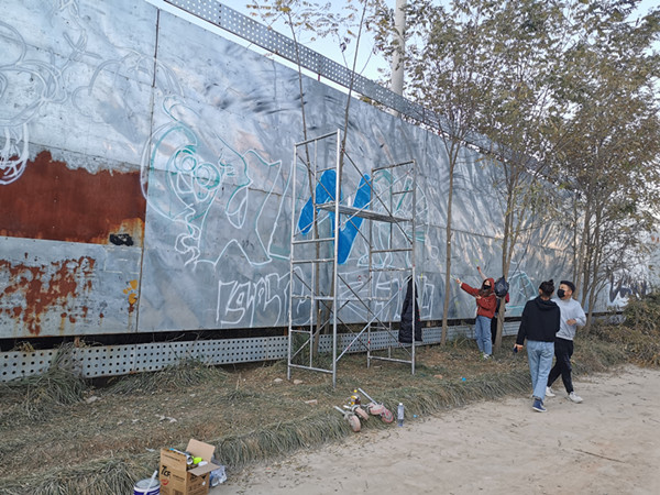 10月27日上午十点,所有入选团队及指导教师于雁儿湾美术馆集合签到、划分现场作画比赛区域,领取脚手架、颜料等。在晴朗的中午,映衬着蓝天,选手们正式开始了激烈的比赛,园区内热闹非凡,到处洋溢着青春的气息。