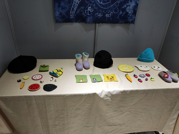 此次展览为2017级美术工艺美术方向《纤维艺术课程的教学成果汇报,共展出了同学们的扎染作品三十余件,毛毡作品二十余件。扎染与擀毡都属于国家非物质文化遗产的传统手工技艺,在我国有着悠久的传承历史,但随着时代的变迁,社会生活的改变,这些曾经具有辉煌历史的传统技艺正面临“生死考验”。为了使之得到更好的保护和传承,公司将扎染艺术和擀毡艺术作为纤维艺术课程的重要组成部分引入课堂。在教学过程中,同学们不仅认识和了解了我国优秀的传统艺术文化,同时也在同学们的创新实践下,使传统手工技艺焕发出新的活力。