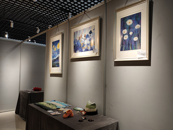 此次展览为2017级美术工艺美术方向《纤维艺术》课程的教学成果汇报,共展出了同学们的扎染作品三十余件,毛毡作品二十余件。扎染与擀毡都属于国家非物质文化遗产的传统手工技艺,在我国有着悠久的传承历史,但随着时代的变迁,社会生活的改变,这些曾经具有辉煌历史的传统技艺正面临“生死考验”。为了使之得到更好的保护和传承,公司将扎染艺术和擀毡艺术作为纤维艺术课程的重要组成部分引入课堂。在教学过程中,同学们不仅认识和了解了我国优秀的传统艺术文化,同时也在同学们的创新实践下,使传统手工技艺焕发出新的活力。