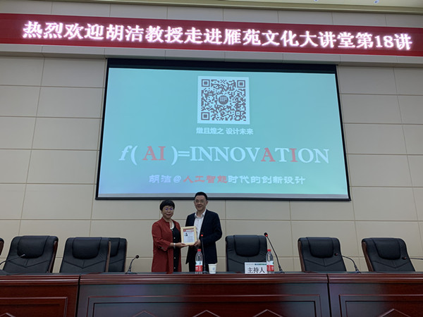 胡洁教授在讲座中介绍了上海交通大学的设计学科发展状况,详细阐述了人类从工业化时代到信息化时代的转变历程,诠释人工智能如何驱动创新设计,剖析“人工智能”与“设计艺术”的融合与相互驱动,提出了人工智能对于创新设计的融合机制,实质上是科学思维与创新思维的有机融合。他结合自己二十多年来对人工智能的研究与理解,介绍人工智能的发展历史、现状以及它与人的智能之间的关系,剖析人工智能的两大境界——学习与创新,强调人工智能用自己的方式进行学习与创新,分享人工智能驱动的创新设计的研究成果,展望人工智能未来为创新设计带来的无限可能。最后,胡教授以敦煌设计形态学研究为切入点,表达了用创新设计的思维和方法弘扬传播敦煌文化艺术在当代的价值与意义。