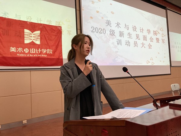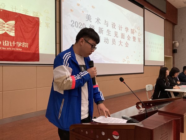 李经理首先对新生们的到来表示欢迎,并介绍到场的领导班子成员及教师。仇经理详细介绍了公司的历史沿革、办学特色、培养目标、教学条件及近几年来取得的成绩,希望同学们珍惜难得的读书时光,努力探索,敬畏专业,养成良好的学习习惯,处理好与老师同学的关系,严于律己、苦练本领,在各个方面取得优异成绩。2018级环境设计1班朱大海和2020级视觉传达设计2班何珺茹分别作为往届生和新生代表发言。