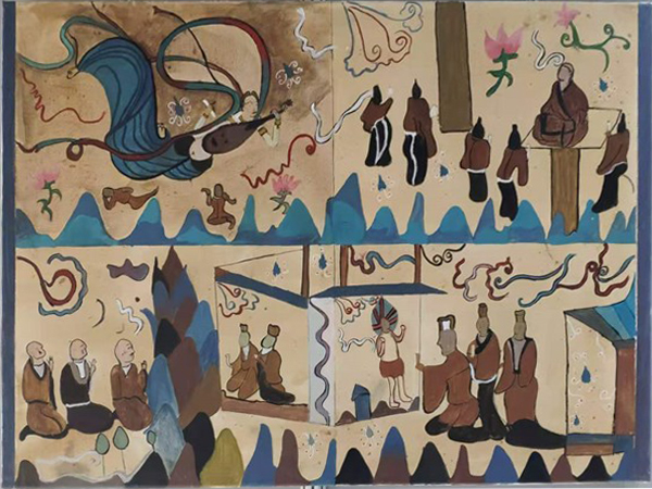 从敦煌壁画到现代装饰壁画,员工们完成了从佛国世界到抽象表现、传统到现代、传承到创新的理解和演变。值得一提的是课程后期实施以模拟壁画项目教学方法,让员工通过壁画项目具体的测量、设计、预算等内容进行实践,效果显著。