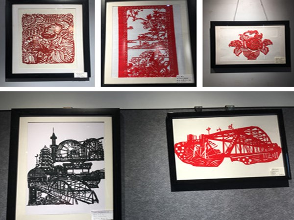 此次展览共展出剪纸作品50余幅,一部分作品以甘肃标志性城市建筑中山桥、白塔山等为主题,适当加入有代表性的文化元素莫高窟、飞天、牛肉面等元素,通过PS对以上图案进行设计加工,形成较有特色的剪纸作品。另外一部分作品以民间吉祥团花或对称图案为主要题材,通过剪纸的形式把皮影、戏曲人物、经典工笔画局部元素作为创作素材,丰富了剪纸艺术的表现形式。