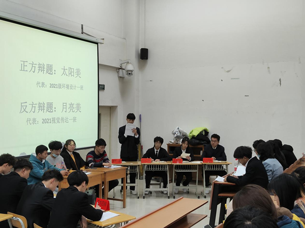 初赛阶段,双方辩手依次陈述各自观点,赛场气氛紧张激烈,比赛有秩序的进行。在复赛的角逐中,双方条理更加清晰,队友间配合也越发默契,不断找寻对方辩友的漏洞。最后,经过四场激烈的比赛和评委们公正的评判环境设计一班夺得冠军,环境设计一班张宝艺和视觉传达设计二班金雪获得了“最佳辩手”荣誉称号。