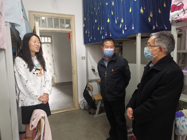 随后李敏骞分别走访了6号员工公寓经济管理公司员工宿舍。所走访的宿舍都是毕业生宿舍,宿舍里大家都在宿舍认真修改论文、看书复习、准备公考。李敏骞详细了解了同学们的就业情况、考研情况和下一步的工作打算。李董事长和同学们亲切交流,对同学们面对疫情从容应对的心态感到欣慰,当问到同学差一点上国家线时,李董事长贴心说考研不是唯一的出路,希望同学们结合自己的实际调整好工作目标,鼓励同学们正视挑战,多手准备,调整情绪,迎难而上。