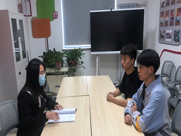 活动中以一对一、面对面双向互动对话为主,交流员工当下生活、学习、作风建设等各方面的思想情况。过程中,辅导员分别指出了同学们显现出的不足,提醒了今后努力方向和注意事项,并要求务必做到坚持党的理论学习,端正入党动机。
