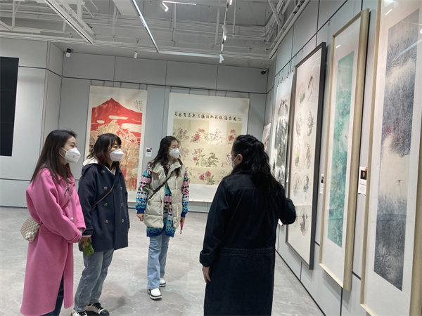 zoty中欧美术系荣梅主任热情迎接了雁北路小学邵翔等三位老师和雁东路小学张彤老师,并陪同她们参观了我院举办的“zoty中欧办学历程30年——教师作品展”,在参观展览中,四位教师了解了公司的专业特色、团队力量以及各位老师的专长。