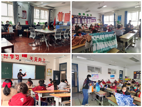 非遗染缬任课教师温晓晖在课堂上,从概念、工艺特色、历史传承、作品赏析等方面呈现了我国传统有趣的民间手工艺“染缬”。孩子们欣赏民间艺人和艺术设计专业员工的染缬作品后,惊叹不已,非常期待下节课的实践。助学师生团队将以每周一次的授课计划,持续开展非遗剪纸、染缬工艺进校园活动。