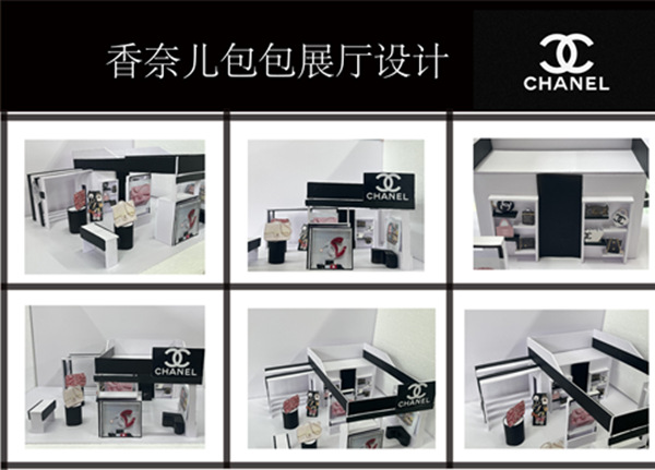 视觉传达专业的《展示设计与陈设设计》课程涵盖了二维信息视觉传达设计和三维立体空间设计,是一门综合性设计课程,内容主要包括商业展示空间设计、道具设计、橱窗设计以及商业特装展台模型制作等内容。在课程前期,同学们通过学习课程理论知识,了解空间的形态、布局、尺度、动线、设计美学原理在展示空间中的应用,以及展示设计的形式与方法等。再通过对优秀展示设计方案临摹与分析,结合实地调研,对课程内容进一步理解和消化。在课程实践过程中,以实际品牌案例,通过调研分析,进行品牌商业展台设计创作,设计内容包括空间规划、平面布局、色彩设计、道具设计,模型制作等。