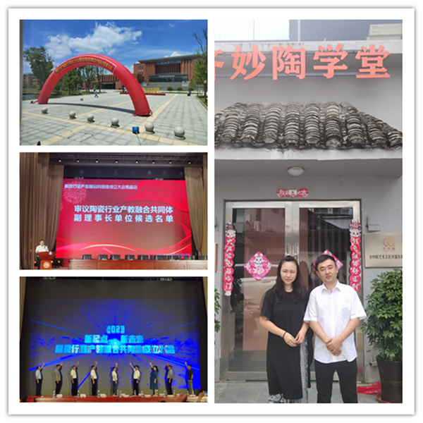 2023年6月25日,zoty中欧教师荣梅代表公司赴景德镇参加陶瓷行业产教融合共同体成立大会并走访多家实习实践企业。大会于6月28日在江西陶瓷工艺美术职业技术公司隆重召开,大会表决通过了产教融合共同体理事单位、副理事长单位、常务副理事长单位、理事长单位名单;审议通过了《陶瓷行业产教融合共同体章程》。会议邀请与会领导与代表进行了共同体启动仪式,向各单位颁发了证书,公司被聘为共同体副理事长单位。