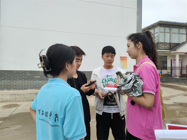 (图为实践团队队员对党崾岘村民开展随机访谈活动)