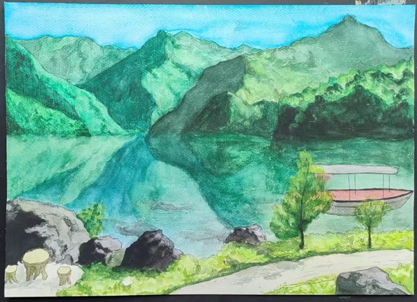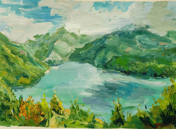 (图片为2022级绘画专业卢淑娥作品《文县天池》)