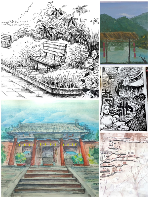 绘岁月变迁、画时代繁华,家乡的山山水水,一草一木给了同学们绘画的灵感。通过“绘•美家乡新风貌”的视角同学们发现了家乡的新变化,表达了他们对故乡的热爱和祝福,有利于同学们扎根甘肃大地,躬身实践积极投身到火热的乡村振兴中,为家乡的发展贡献艺术的力量。