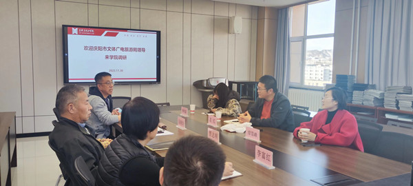 11月30日下午,庆阳市文体广电旅游局左红副局长、非遗科科长李天蓝和文化馆副馆长缪雪峰一行来公司调研座谈,公司领导和各系主任参加座谈。
