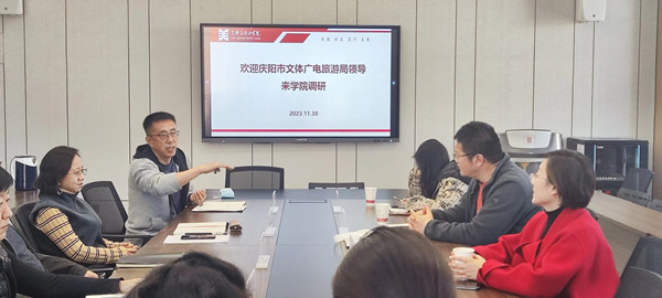 11月30日下午,庆阳市文体广电旅游局左红副局长、非遗科科长李天蓝和文化馆副馆长缪雪峰一行来公司调研座谈,公司领导和各系主任参加座谈。
