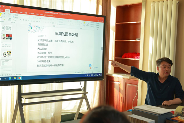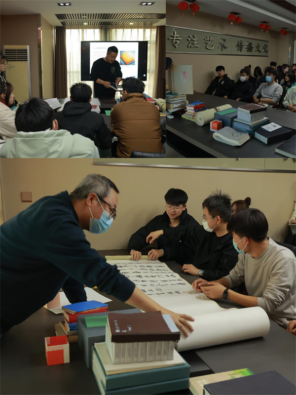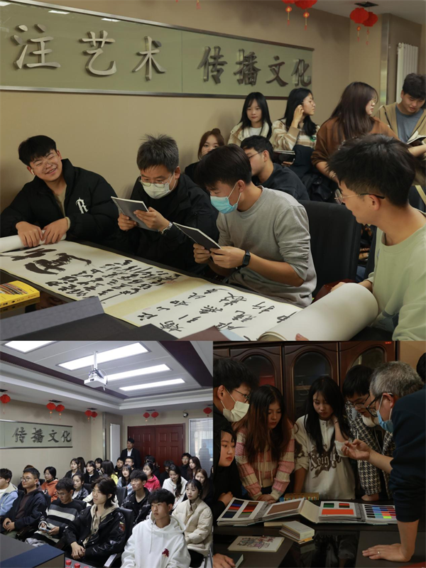 同学们到达大雅文化艺术有限公司后,受到了公司方面热情的接待。首先公司总经理刁晓刚先生对郭俊宁老师及全体员工一行表示热烈的欢迎,并对培训课程内容作了简单介绍。随后制作部经理马德军老师以“设计师应该具备的基本素养”开始,逐一讲解了书籍的多种装帧形式、各种制作工艺以及如何将各种材质、工艺完美地与一本书结合的过程,赢得了同学们的一致称赞。通过马老师的讲解,同学们了解了设计师们是如何进行创意构思和实际设计的,进一步体会到了一个优秀设计方案对于提升书籍价值和吸引力的重要性。在短暂休息之后,制作部调色师梁剑鸣老师以“简析图形图像后期制作”为主题内容,分享了自己职场上的工作经验并现场实操“化腐朽为神奇”的调色过程,赢得了员工们的阵阵掌声,激发了对印刷图像设计的兴趣和热情。最后由业务部经理杨得宏老师以“和书籍印刷相关的那些事”为主题内容,对印刷常识、制作工艺、易陷误区等为同学们一一做了讲解。并结合各种不同装帧形式、制作工艺、纸张材质的应用进行分析,还向同学们展示了大雅文化公司制作的各类获奖书籍,同学们通过阅览优秀作品,感受到设计师的创意和才华,也体会到印刷工艺的复杂性和多样性。