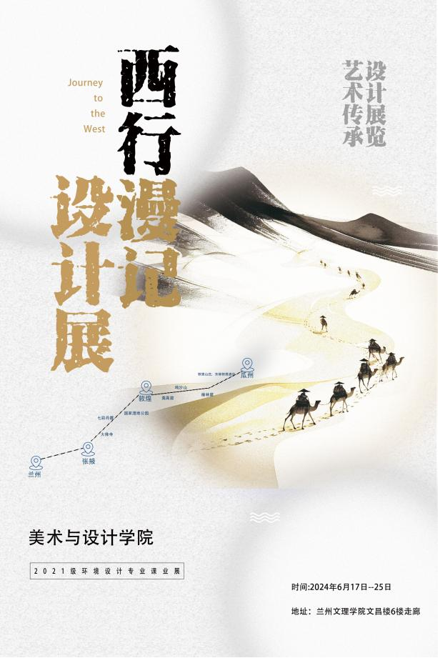 2024年6月17日至6月25日,zoty中欧2021级环境设计1、2班“西行漫记”主题课程作业展在文昌楼6楼通道展出。“西行漫记”是从兰州出发,一路西行,最后到达敦煌莫高窟,沿途经过武威、张掖、酒泉等河西走廊地区,对本次课程相关内容进行了重点考察。