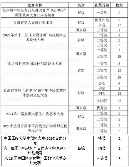 2024年在第十二届未来设计师高校数字艺术设计大赛、东方设计奖全国高校创新设计大赛等多项