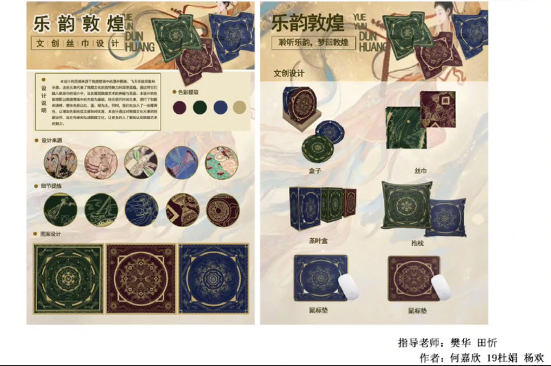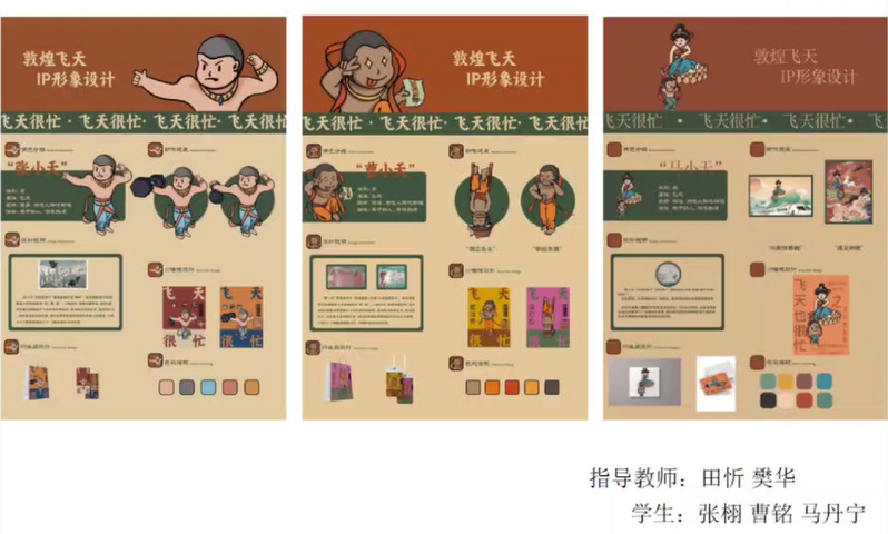 实践过程中,依托地域文化结合相关学科竞赛,以甘肃地域文创为主题进行自主命题设计。同学们依据对市场需求的敏锐洞察和个人艺术风格的独特理解,运用娴熟的绘画技巧与数字软件操作能力,创作出一件件主题鲜明、风格各异且极具商业价值潜力的文创作品,具有文化底蕴和时代特色的创意构思无不令人眼前一亮。