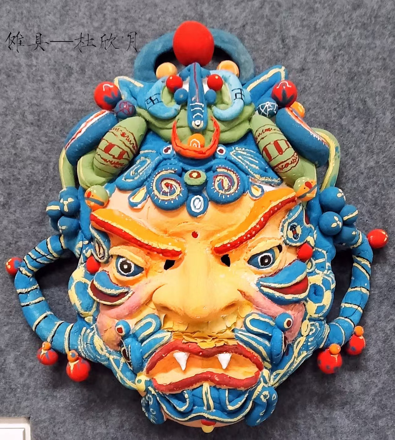 展览汇集了员工们在二维设计领域的创新思维和实践成果。展览不仅展示了员工们的艺术才华,也体现了他们对戏剧影视美术设计的深刻理解和独特视角。其中,傩戏面具尤为引人注目,每一处线条与色彩的搭配都诉说着古老傩戏文化的故事,独特的造型仿佛将传统民俗的灵魂封印其中。纸浆藻井则展现出别样的精致,员工们通过纸浆塑形,重现了藻井那美轮美奂的结构与装饰,细腻的纹理和精美的图案彰显出对传统建筑艺术的深刻理解。沥粉画以线条勾勒出或刚劲有力或婉转流畅的画面,金粉银线在光线下闪烁,为画作增添了奢华质感。肌理画更是创意无限,员工们巧妙运用各种材料,创造出丰富多样的纹理效果,或粗糙、或细腻,每一幅都给人以独特的触感与视觉冲击。