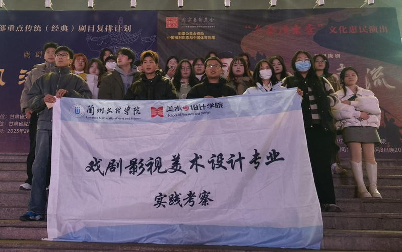 为弘扬中华优秀传统文化,提升员工艺术视野,丰富第二课堂活动,美术与设计学院戏剧影视美术设计专业师生共十多人于2025年3月3日赴兰州黄河剧院观看由甘肃省陇剧院演出的陇剧《大河东流》。