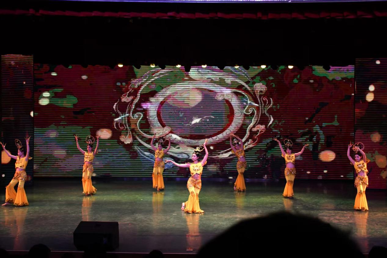 公司选送的敦煌舞作品《沁莲》以敦煌壁画为灵感源泉,由齐文、秦一婷、赵宇洁、牛一婷、任蕊、伍小星、杨丽菲这7名舞者倾情演绎。舞蹈巧妙融合敦煌壁画中独特的“S”形曲线与三道弯姿态,舞姿灵动且富有韵律,随着音乐的起伏,舞者们时而轻盈飘逸,如同仙子下凡;时而矫健有力,展现出敦煌壁画中人物的坚韧与毅力。整个表演过程中,观众们被深深吸引,掌声雷动,赞叹不已。