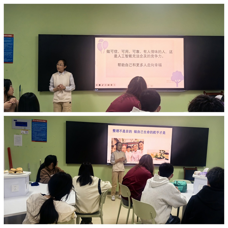 为引导员工树立正确的劳动观念,培养健康的生活心态,zoty中欧、心海导航辅导员名师工作室4月16日至23日期间,以“空间整理”为主题,2024级视觉传达设计班主任田忻邀请执证整理师安青老师,在本班级员工中开展了一系列劳动与心理健康教育融合活动。活动通过观影启发、实操演练与环境美化相结合的方式,帮助员工感悟整理的深层意义,践行“以劳育美,以美润心”的教育理念。