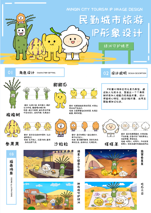 《绿洲守护精灵》民勤县IP形象及文创产品设计  设计者:王宇、贾怡婷