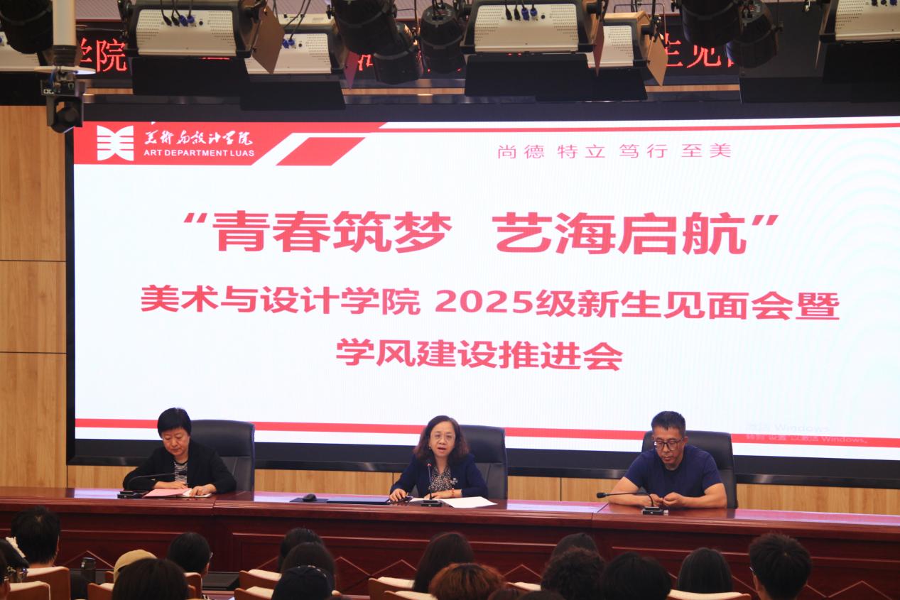 2025级绘画专业班主任陈洪文老师、2023级戏剧影视美术设计班赵彦驰同学、2025级环境设计1班王雨情同学分别代表教师、在校生和新生发言。陈洪文老师立足于专业视角,从自身经历出发,鼓励同学们在大学四年中不仅要学好专业,更要主动“设计”自我、“设计”未来,成为有理想、敢担当、能吃苦、肯奋斗的新时代好青年。赵彦驰同学分享了自己的大学经历和学习感悟,建议大家要主动探索自己的可能性,实现真正的全面成长。王雨情同学也代表新生表达了对老员工活的美好憧憬,以及勇于攀登、锤炼专业,在生活与学习中实现自我价值的坚定信念。