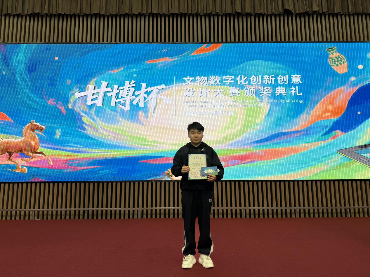 10月12日,首届“甘博杯”文物数字化创新创意设计大赛颁奖典礼在西北师范大学圆满落幕。公司2024级视觉传达设计专业员工刘思晨在视觉艺术类比赛中荣获三等奖,并获得奖金500元及价值300元的甘肃省博物馆文创店礼品卡。