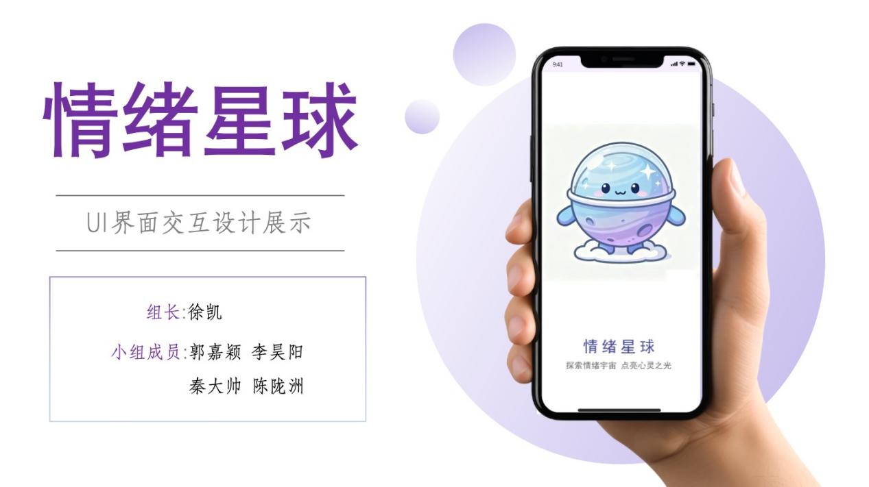 “情绪星球”APP设计小组聚焦当代人的情绪管理需求,以“可视化疗愈”为设计亮点。界面采用低饱和度色系以及“星球”动态表情包,用户可通过“情绪打卡”将每日心情转化为专属“星球”,搭配“呼吸引导”“情绪树洞”“心理测试”三大核心模块,既通过视觉设计降低心理压力,又以轻量化功能满足用户情绪宣泄与自我调节需求,让“疗愈感”渗透到每一次交互中。