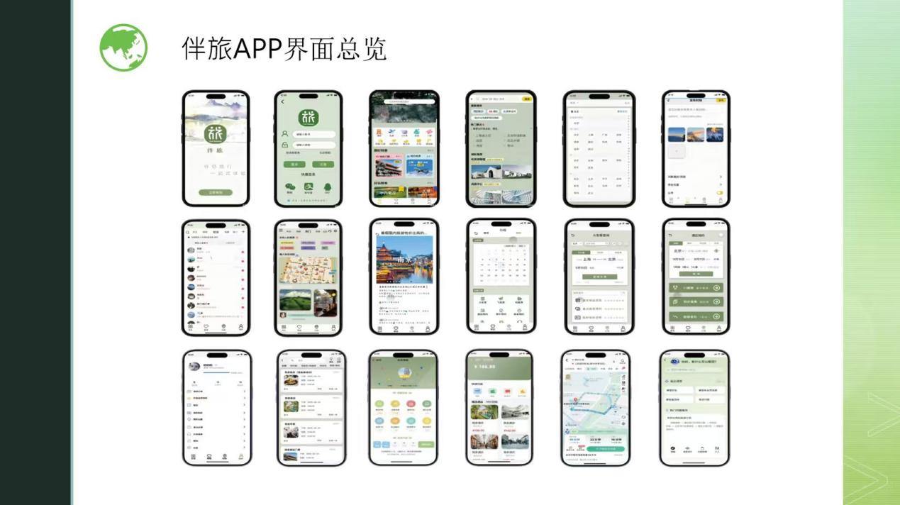 “伴旅”APP设计小组瞄准年轻群体的穷游与社交需求,打造“轻量级旅行社交”界面。设计中突出“结伴匹配”“穷游攻略”“旅居短租”三大核心功能,采用虚拟导游IP形象吸引年轻用户,支持用户快速筛选同路线旅伴,攻略板块则由用户UGC内容生成,既降低旅行规划成本,又通过社交属性增强用户粘性,贴合Z世代“边玩边社交”的旅行习惯。