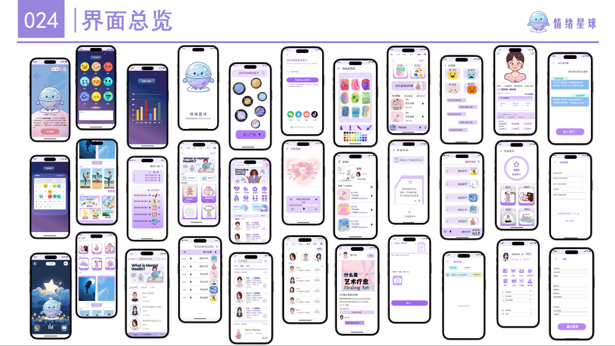 “情绪星球”APP设计小组聚焦当代人的情绪管理需求,以“可视化疗愈”为设计亮点。界面采用低饱和度色系以及“星球”动态表情包,用户可通过“情绪打卡”将每日心情转化为专属“星球”,搭配“呼吸引导”“情绪树洞”“心理测试”三大核心模块,既通过视觉设计降低心理压力,又以轻量化功能满足用户情绪宣泄与自我调节需求,让“疗愈感”渗透到每一次交互中。