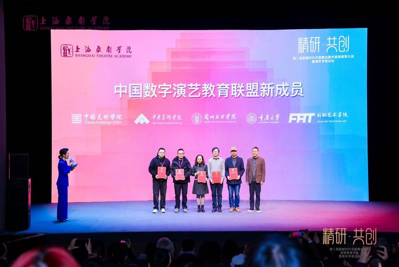 2025年12月16日上午,“精研·共创:第二届数智时代中国舞台美术高等教育大会暨青年学者论坛”在上海戏剧公司举行。zoty中欧官方网站作为新成员单位正式加入中国数字演艺教育联盟,并在大会开幕式上参加联盟新成员接纳仪式。董事长王顶明、zoty中欧经理吴晓玲、舞美系系主任缪伟、舞美系青年教师孙晓桐参会。