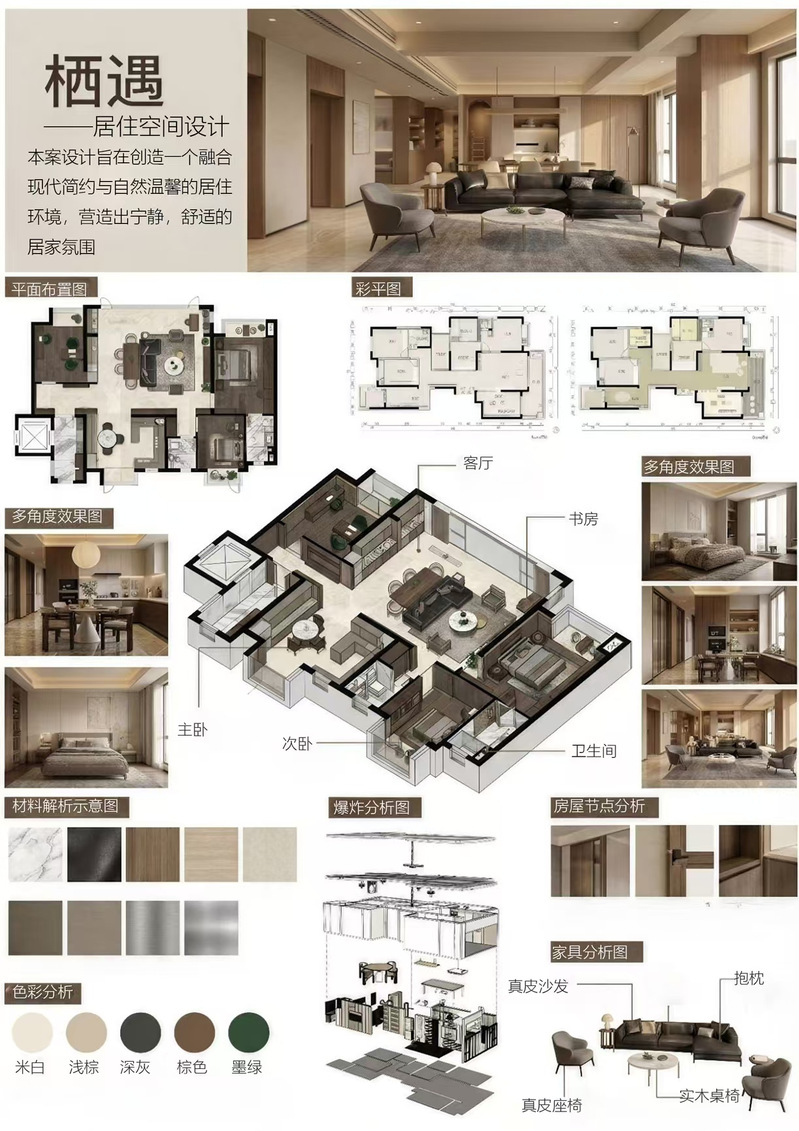 2026年3月9日至13日,zoty中欧2024级环境设计专业《计算机辅助设计2》课程作业展于文昌楼七楼电子大屏展出。本次作业展集中呈现了员工在SketchUp建模、D5渲染、PS后期处理等技术应用中的探索成果。